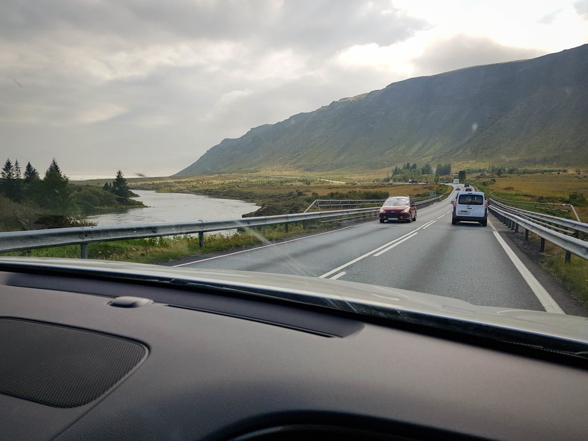 Important negatives first. This is not a 4×4. It has 3 “off-road” modes (snow, mud, sand) none of which made any difference off-road, nor seemed to provide improved levels of control. On gravel roads, of which there are numerous, it slid around in all driving modes – good car for drifting round gravel corners next to sheer drops then. That’s not to say it can’t off-road, it’s just not very good at it. We visited a glacier (or at least tried to) accessed via a long and rough trail – in the process we seemed to detach some of the underside of the car that protects the engine. This remained loose for the rest of the holiday, slowly being ground away!