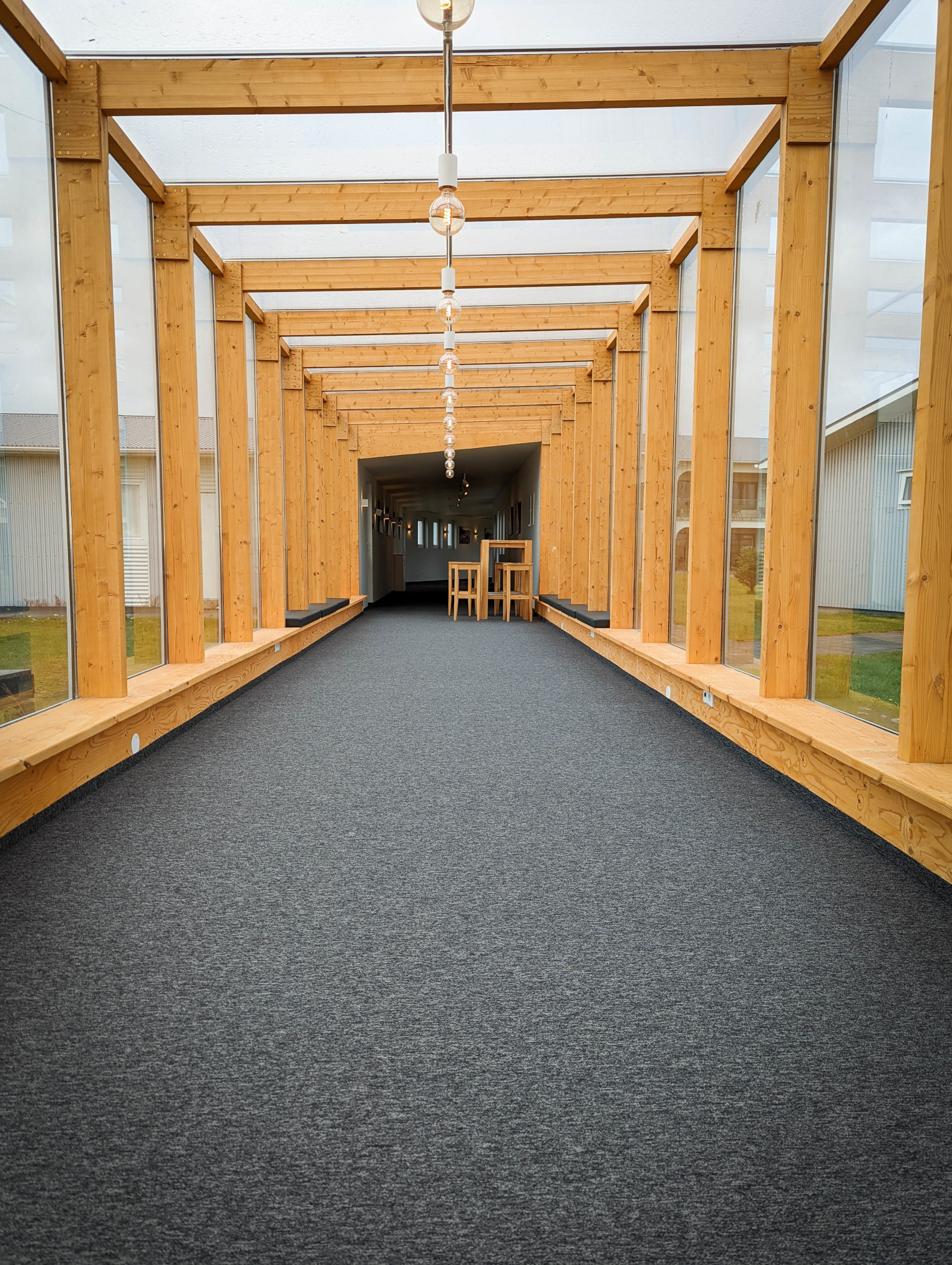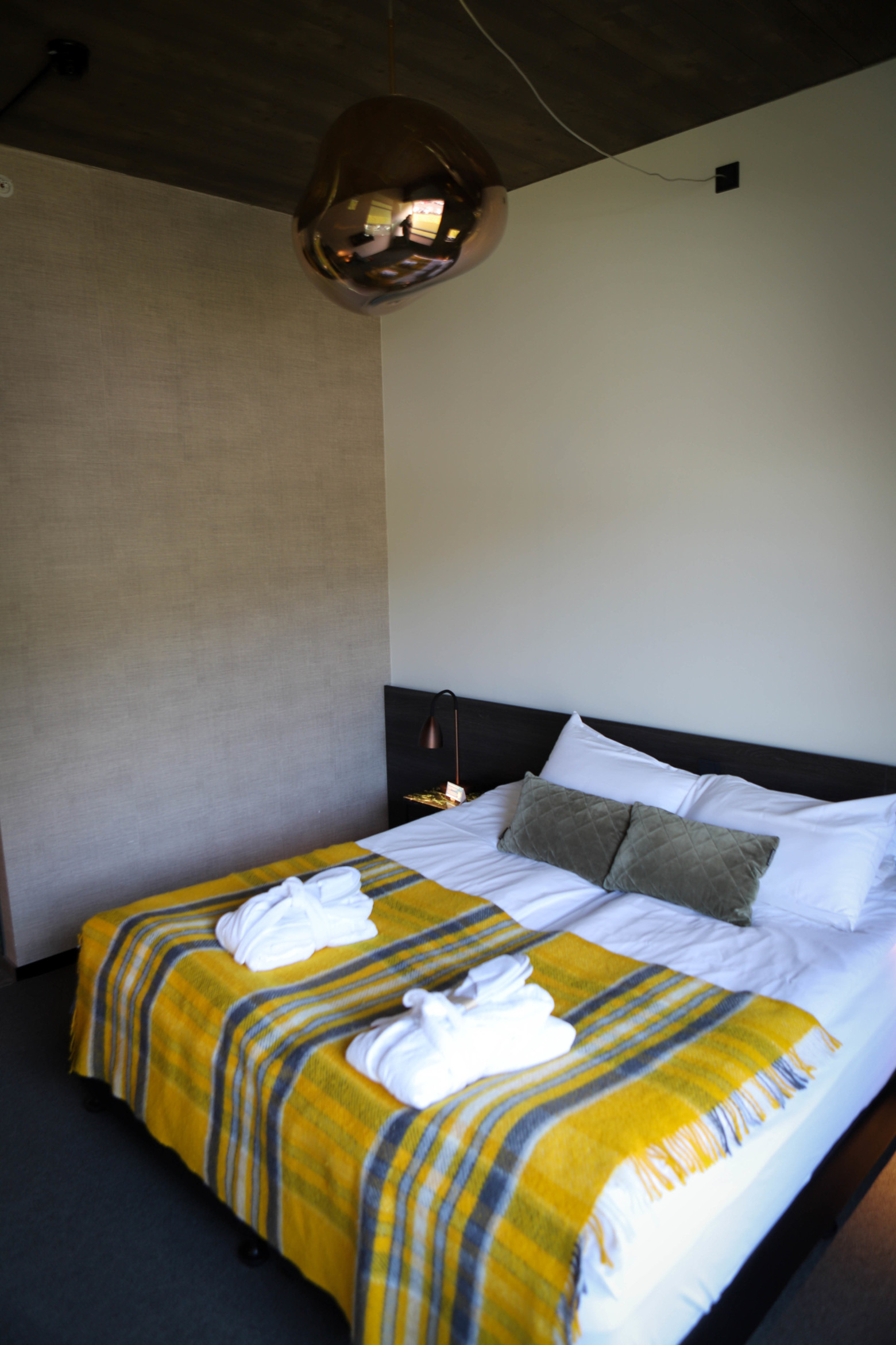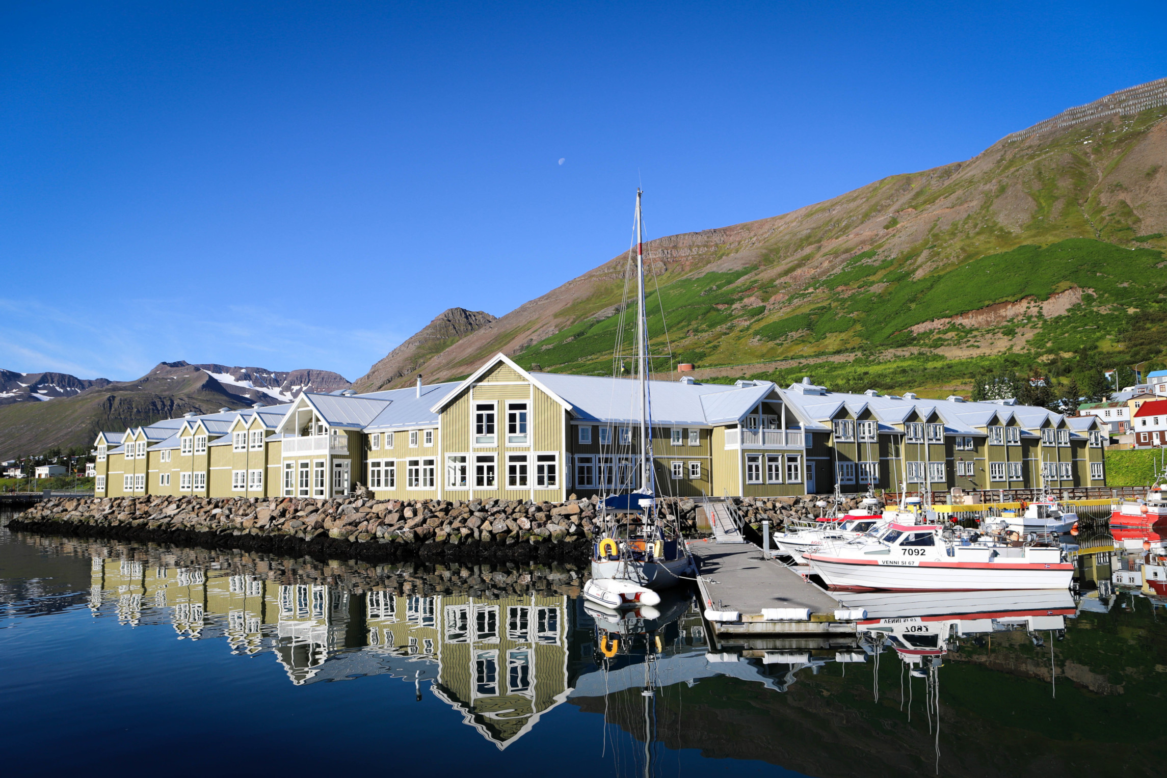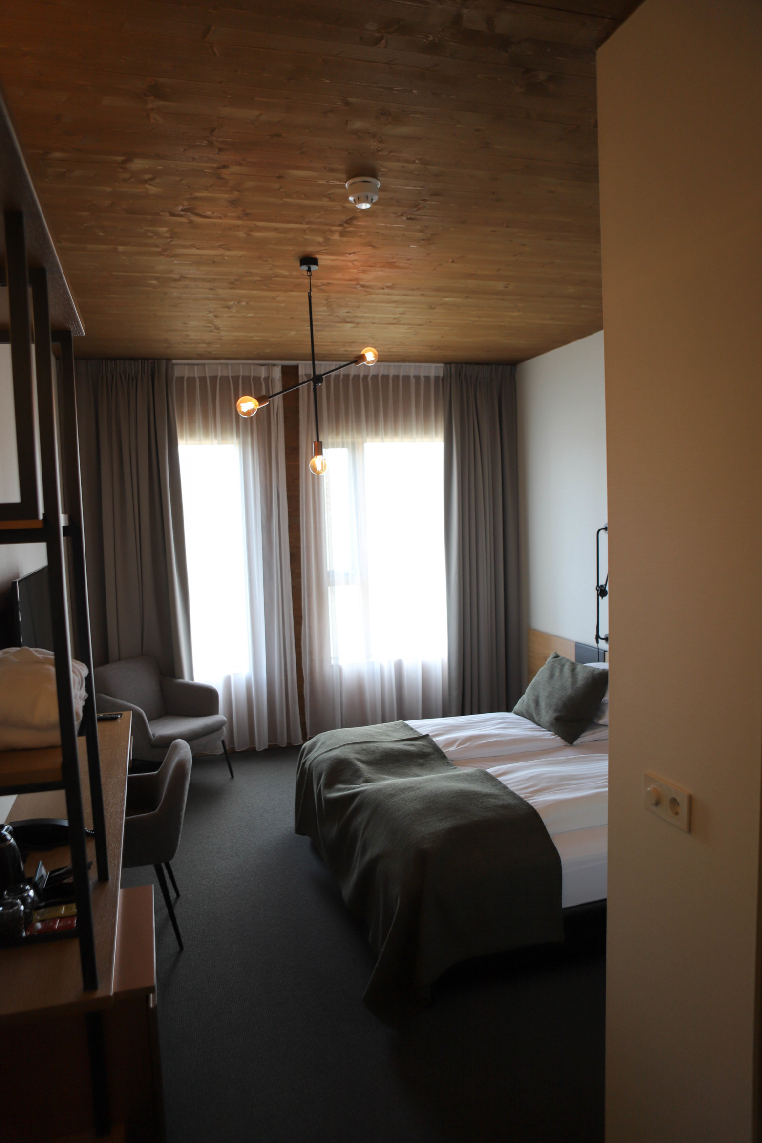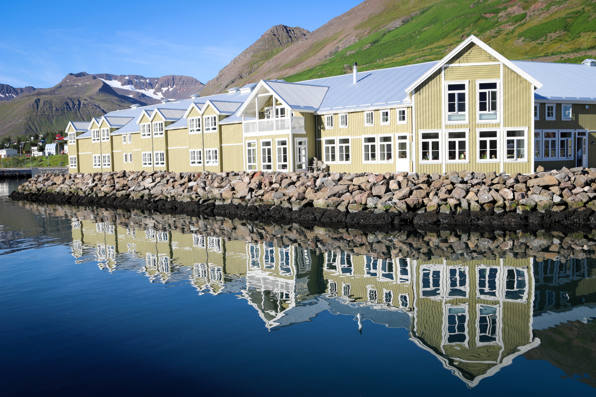 Located in a tiny fishing town, Siglufjörður, Sigló Hótel is more traditional than modern, but with some very modern takes. An outdoor hot bath area overlooks the harbour and mountains beyond, big enough for numerous occupants, a restaurant with enormous tables and chairs, and very comfortable rooms, Sigló Hótel is clearly a destination for more discerning travellers and those who just can’t stop working even when away (two seen typing on laptops and making obviously business calls from the bar!)