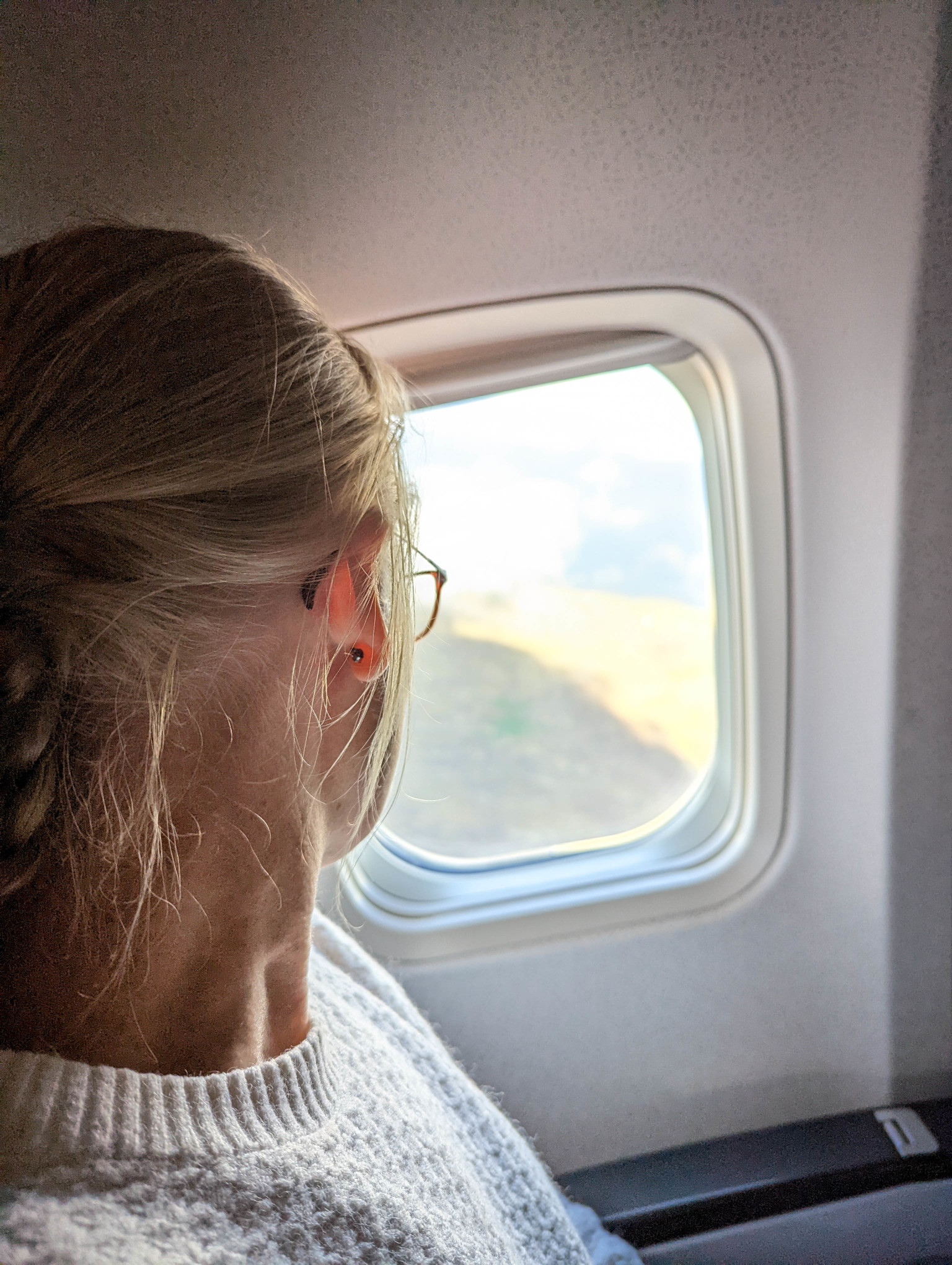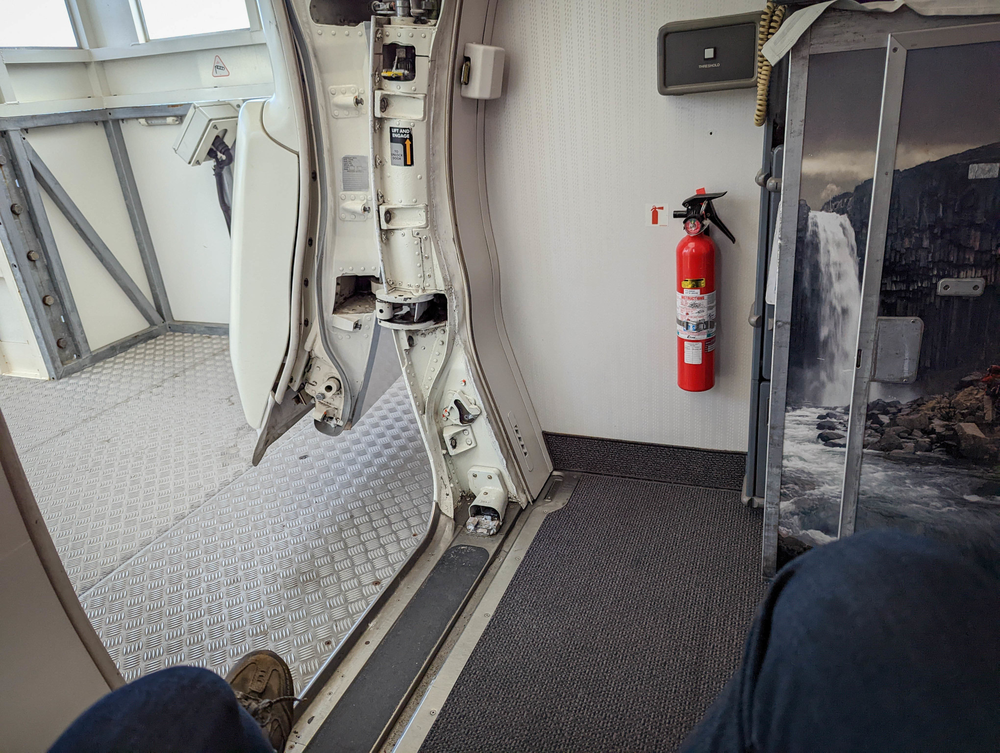 No plane photo as there were insufficient windows, but as we got to the plane the pilot was looking at volcano pictures on his phone!! We caught him doing it…