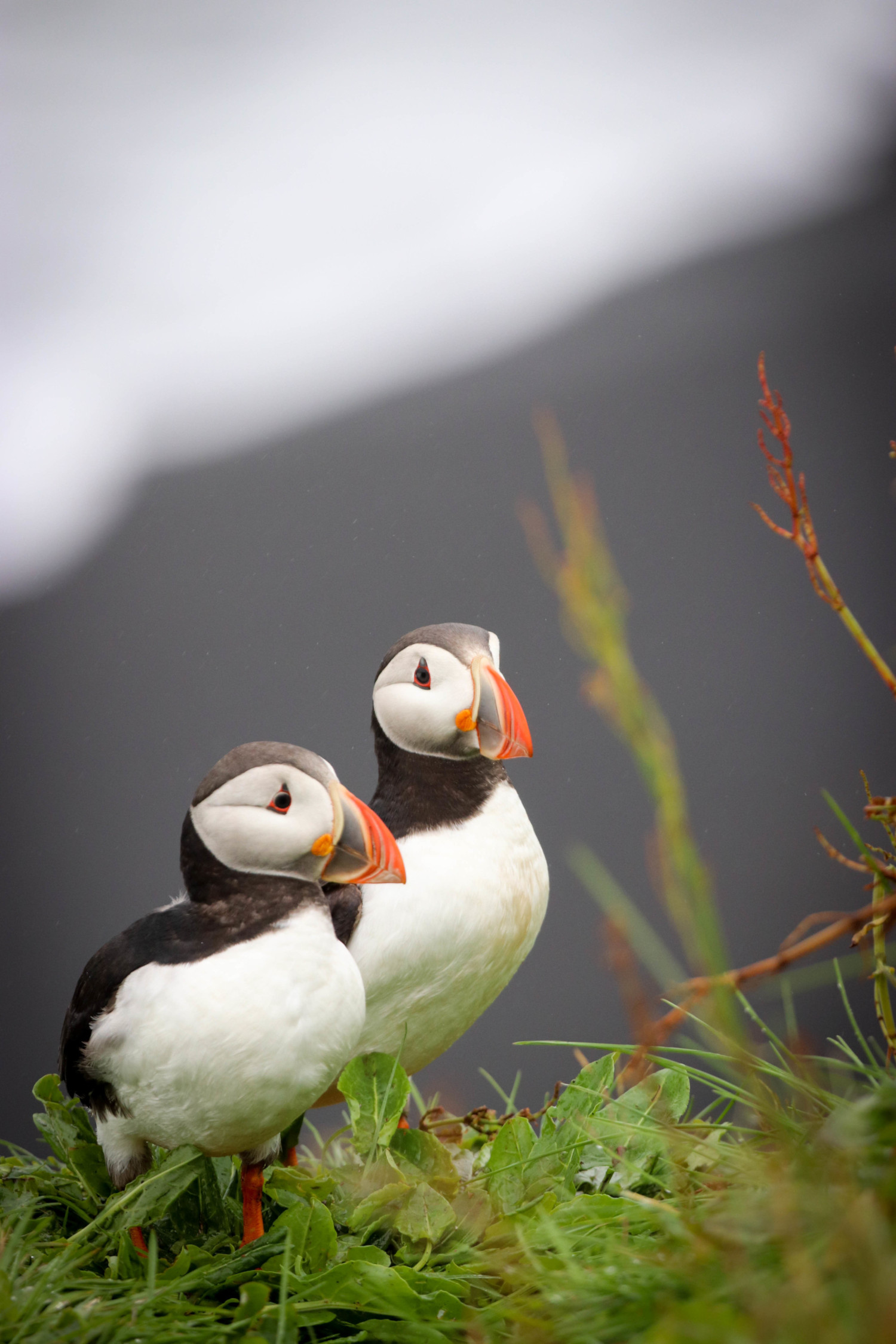 We saw puffins in two places: Dyrholaey and Borgarfjordur. We were told that the second (Borgarfjordur) was the best and most reliable, but obviously this is entirely dependent on the season. We saw literally thousands in the colony at Dyrholaey and they were constantly flying from the cliffs to the sea and back – so we assumed they were still feeding young. At Borgarfjordur, about a week later, we still saw some puffins flying back and forth and these ones were clearly successful in their hunting – returning with fish – most of the birds were sitting our on the sea resting. I presumed that was families whose chicks had fledged.